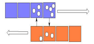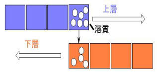 図2 .向流分配の様子 上層に存在する溶質が下層にも分配され,移動した上層と下層は新たに分配を繰り返す