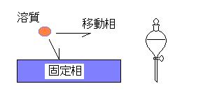 図1. 溶質の移動 固定相と移動相の選択は分液漏斗内と同じ