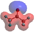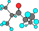 中心に位置している炭素(灰色)がカルボニル炭素であり、赤色が酸素である。カルボニル基に立体的に混んでいるイソプロピル基が2つついているが、図3を見れば分かるようにカルボニル基周辺の立体はすいていることが分かる。
