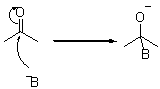 これはカルボニル基の反応の中でも最も使われている反応である。カルボニル基は平面構造をとっているために立体障害を受けにくく、カルボニル炭素周辺がすいているため求核攻撃を受けやすい。