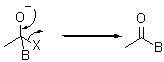 カルボニル根元への求核攻撃後に進行するルートは2種類に分けることができ、1つ目はカルボニル炭素の隣接位に脱離しやすい官能基が存在する場合に図4のように酸素-炭素二重結合が生成し脱離能の良い(脱離後に安定である)官能基が脱離する反応である。