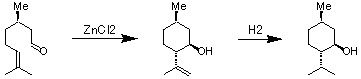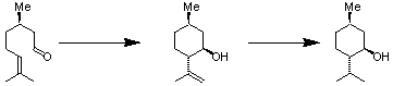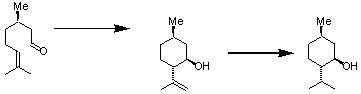 L-mentholの合成反応を例にして描いてみます。