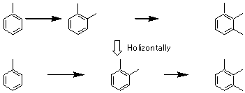 A 出発原料を選択し、コピー→貼り付けを行います。そして、化合物の間に矢印ツールを使って矢印を描きます。