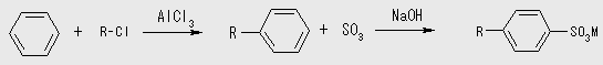 ▼ 直鎖アルキルベンゼンスルホン酸塩(LAS)の合成法