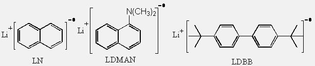 これらは固体金属(不均一系)と異なり、THFなどの金属にかようなので均一系であるため、低温でも反応が速やかに進行する。実際の活性種は芳香族ラジカルアニオンである。