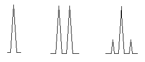 図1 吸収線の分裂(左:1重線 中央:2重線 右:3重線)
