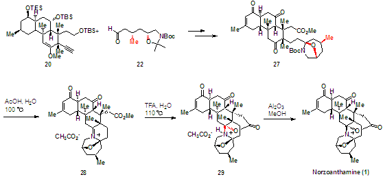 最後は2つのアミノアセタール部位の構築によるノルゾアンタミンの全合成です。