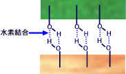 例えばウレタン接着剤で木綿などの繊維を接着するときはウレタン中のイソシアネート基が繊維中のヒドロキシル基と共有結合で結合するものと考えられている。(図3-1) またデンプン糊と紙が接着するときは、紙を構成するセルロースのヒドロキシル基とデンプン中のヒドロキシル機基が水素結合で結びつくためとされている。(図3-2)