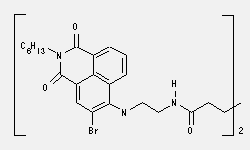 最近、エイズ治療に有効な色素が報告されている。蛍光性ナフタルイミド誘導体(図5)でもともとPDT(光学治療 photodynamic therapy)用に開発されたのだが、これは光照射によるO2の発生によって作用するものではなく、トリプロファンと化学結合することによってエイズウィルスの感染を防ぐといわれており、その作用機構が注目されている。