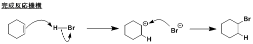 まずは簡単な例で見てみましょう。「シクロヘキセンへの臭化水素酸の付加反応」をとりあげます。この反応はどのような機構で起こっているのでしょうか?電子の矢印で反応機構を書くプロセスを、できるだけ詳細に解説してみます。