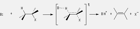 このように反応機構の変化はC-HとC-X結合の切断の容易さによって決まるので、塩基の強さ、X-の脱離能、カルボアニオンとカルボカチオンを安定化する置換基の効果、塩基の接近に対する立体効果、溶媒の極性などさまざまな要因によって支配されている。