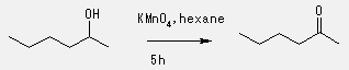 2級アルコールの酸化も炭化水素系溶媒中で過マンガン酸カリウムを用いて良い収率で行うことが出来る。この反応を攪拌条件で行った場合、強い溶媒効果が見られるが、超音波照射下ではほとんどみられないことが報告されている。